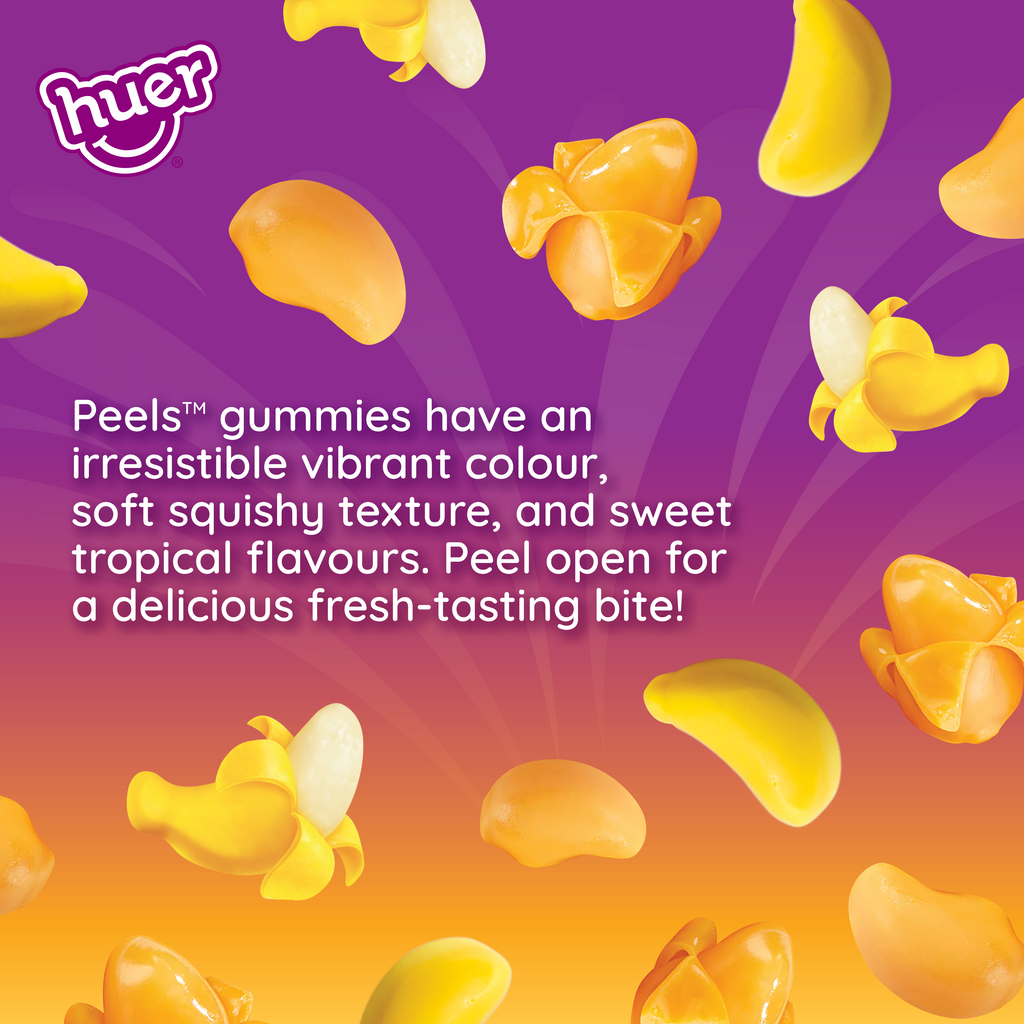 Peels mango gummies have an irresistible vibrant orange colour, soft squishy texture, and sweet tropical mango flavour reminiscent of freshly sliced mango. Peel open for a delicious fresh-tasting bite!