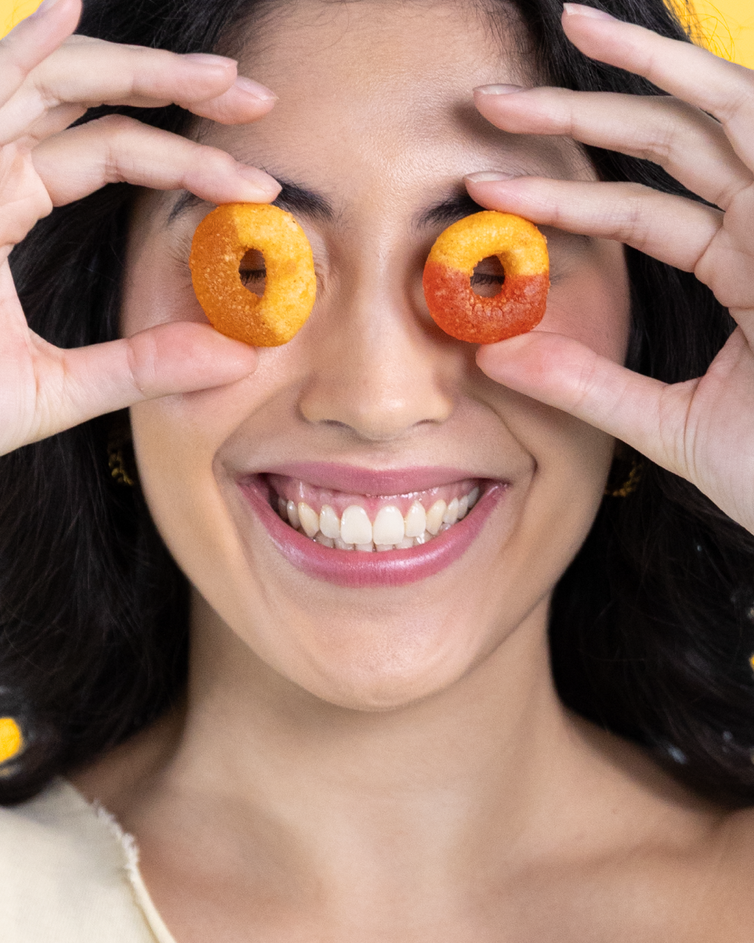 • ENROBAGE STYLE CHAMOY : Chaque anneau est enrobé d’un assaisonnement acidulé et épicé de style chamoy Cholula, combinant douceur fruitée, notes d’agrumes et un soupçon de chaleur.